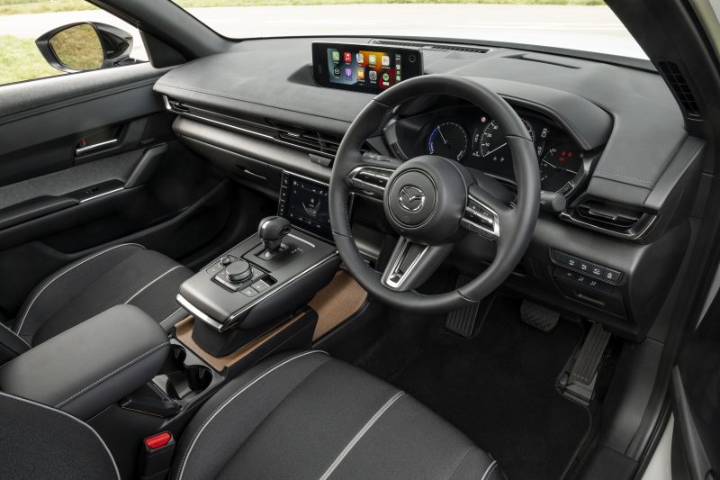 Adding “the Mazda MX-30 is the perfect EV when considering a purchase based on actual usage rather than ultimate range, a survey of our digital service records across 1.5 million Mazda cars in the UK, highlights that the average daily mileage is just 26-miles, and we’ve found that customers who choose an EV as a second car or a shorter range commuting car, find the MX-30 to be perfect, especially when combined with the convenience of a home charger”.