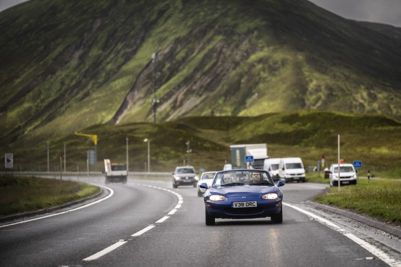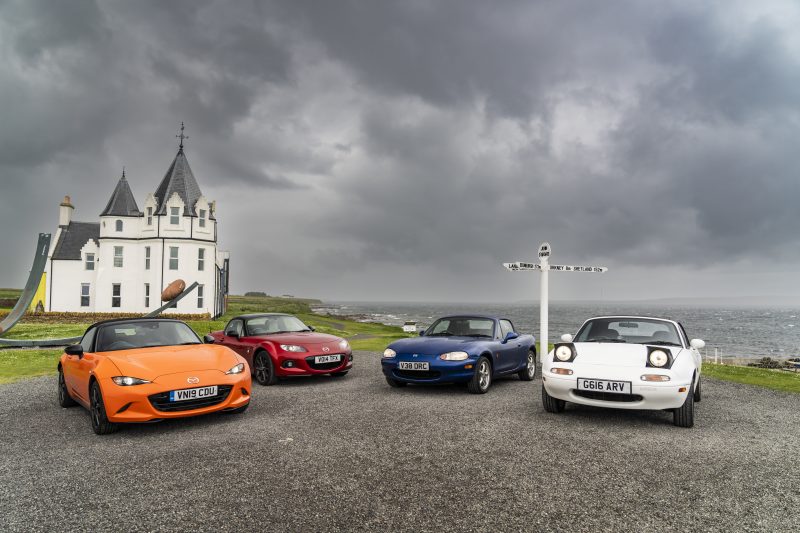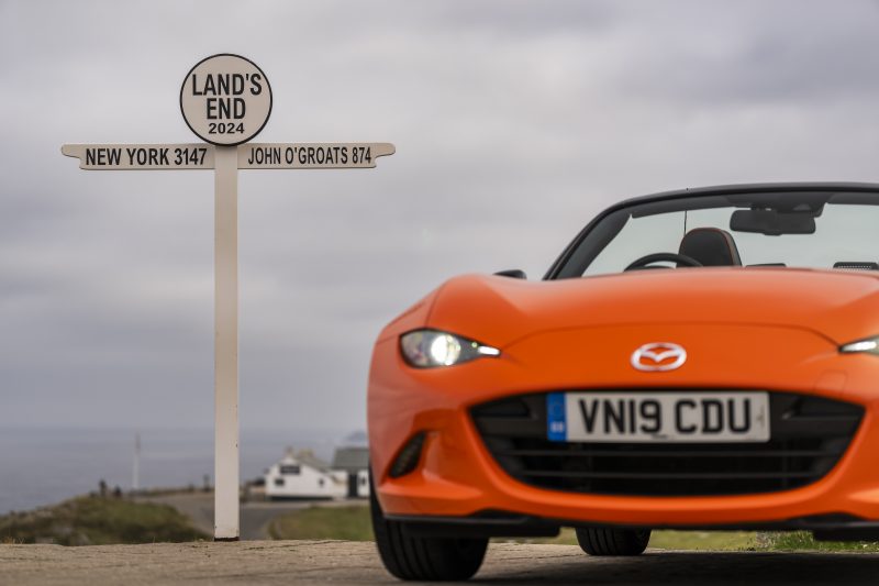 To celebrate 35 years of the Mazda MX-5, four Mazda MX-5s – one of each generation – drove a 1,000-mile route from Land’s End to John O’ Groats using sustainable fuel. Powered entirely by a 100 per cent biofuel from SUSTAIN, the world’s best-selling two-seater sports car became the first car to complete the end-to-end drive across the UK using sustainable fuel.