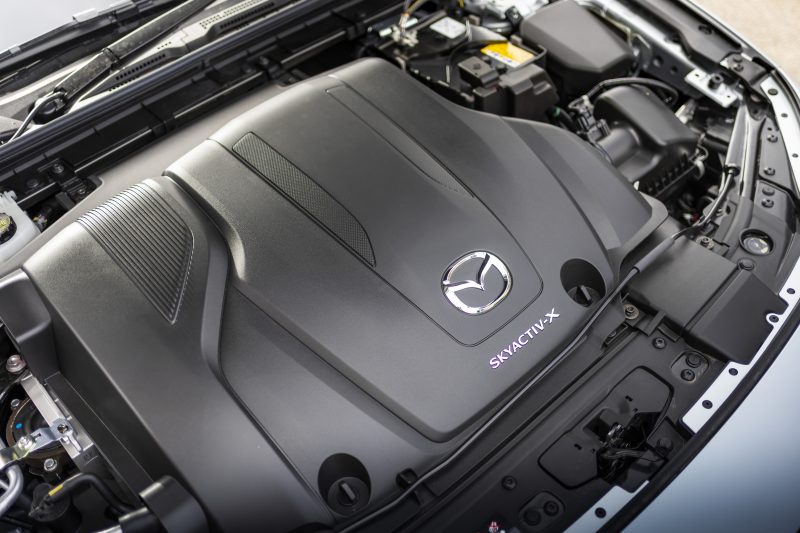 At the top of both model line ups the 186ps e-Skyactiv-X engine is retained unchanged, featuring Mazda’s unique SPCCI Spark Controlled Compression Ignition technology it produces 186ps at 6,000rpm and maximum torque of 240Nm at 4,000rpm. Featuring a 15.0:1 compression ratio, optimised combustion control, uniquely shaped pistons and the innovative SPCCI combustion technology – the e-Skyactiv X engine delivers a broader operating band of combustion efficiency, which ensures e-Skyactiv X not only delivers higher maximum engine torque but also improved real-world fuel economy. In addition, the Mazda M Hybrid mild-hybrid system’s software ensures torque reactions issued through the belt-driven ISG that are quick enough to flatten the torque curve. As a result, the engine feels even smoother during linear acceleration.