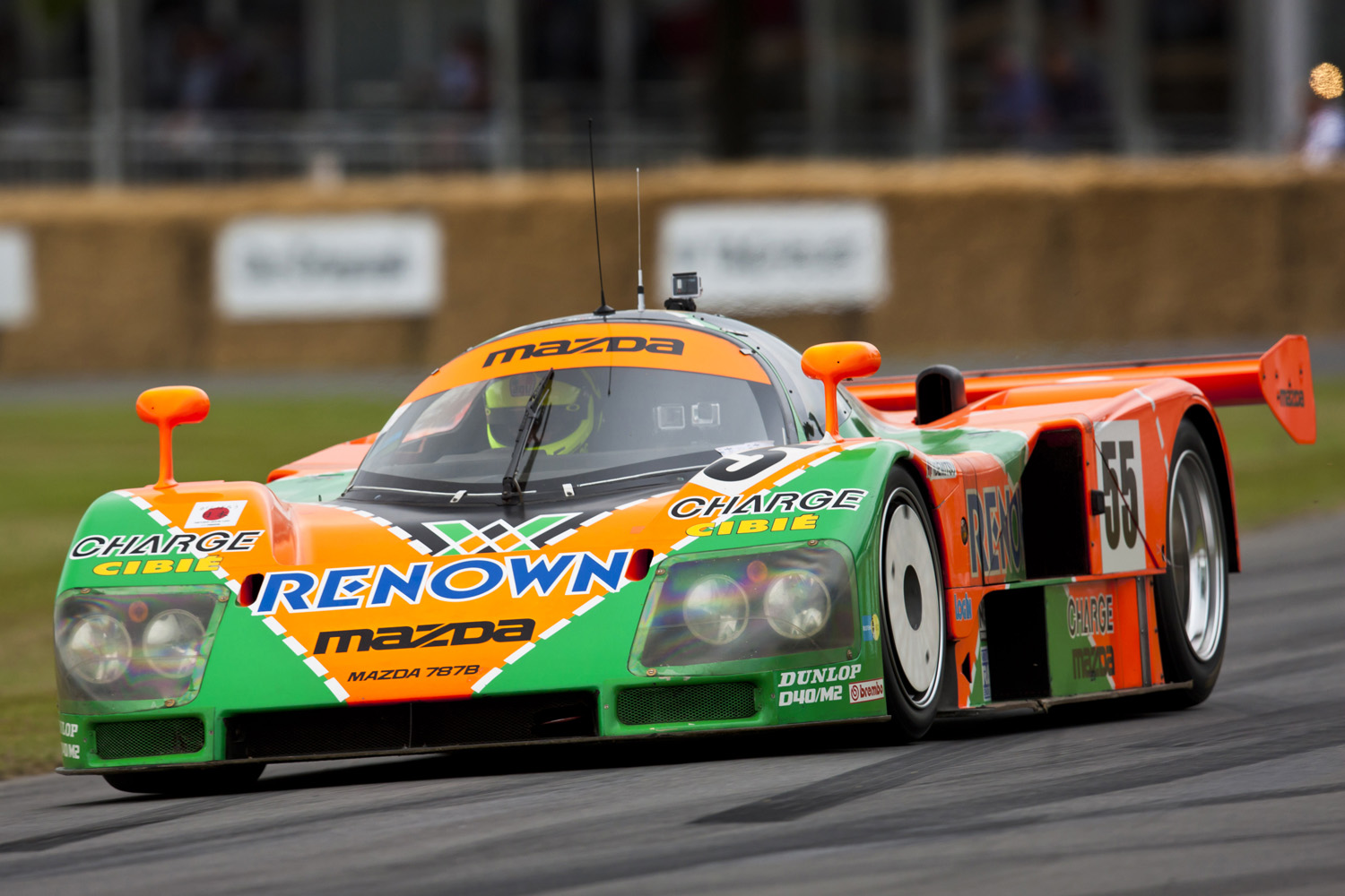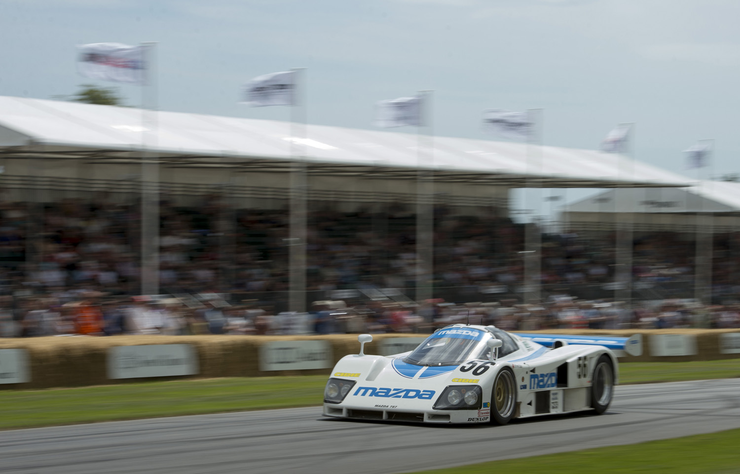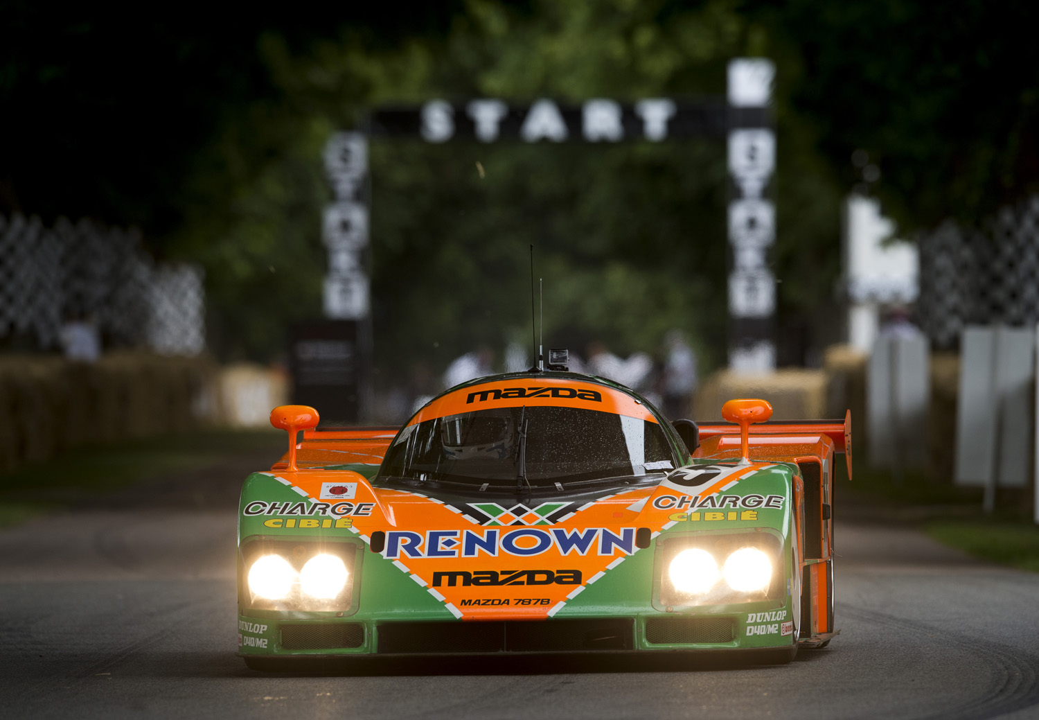 The 1991 Mazda 787B on the Goodwood Hillclimb course, driven by Valentino Rossi