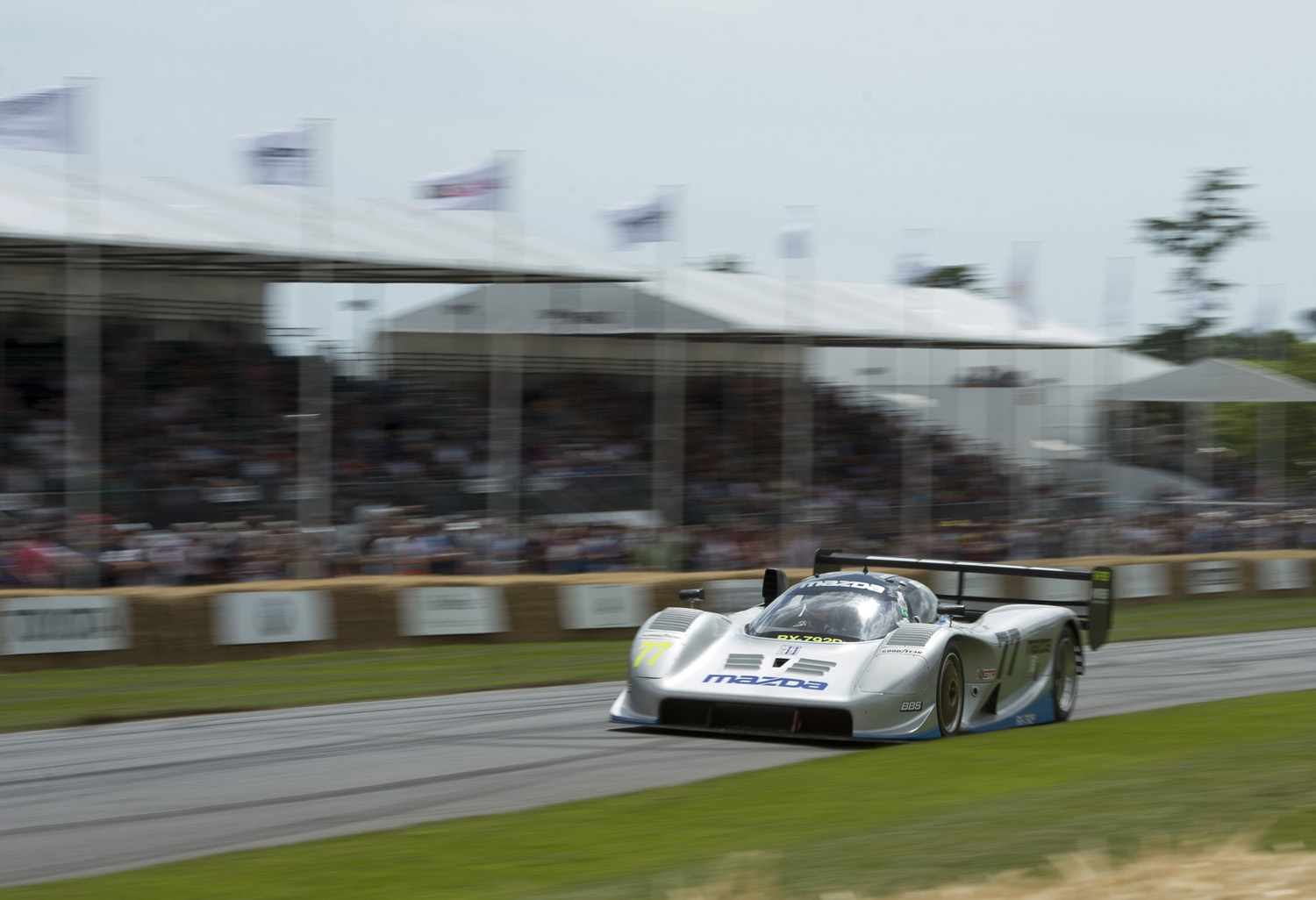 The 1992 Mazda RX-792P uses every inch of the track at the 2015 Goodwood Festival of Speed
