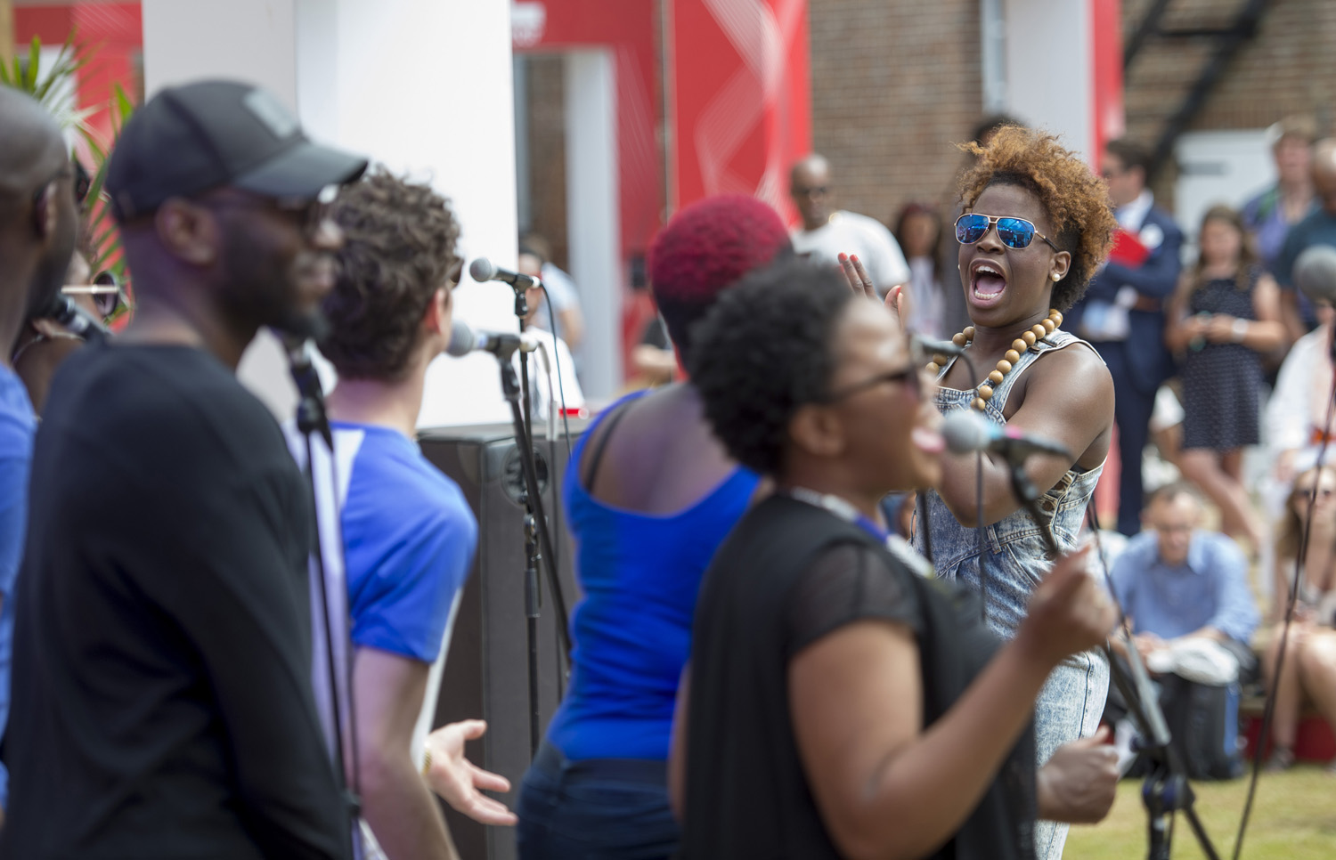 The House Gospel Choir entertains the crowds in Goodwood's Stable Yard, 2015